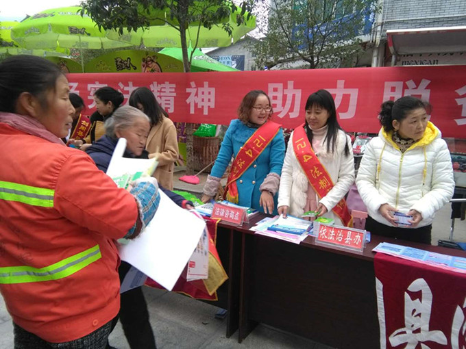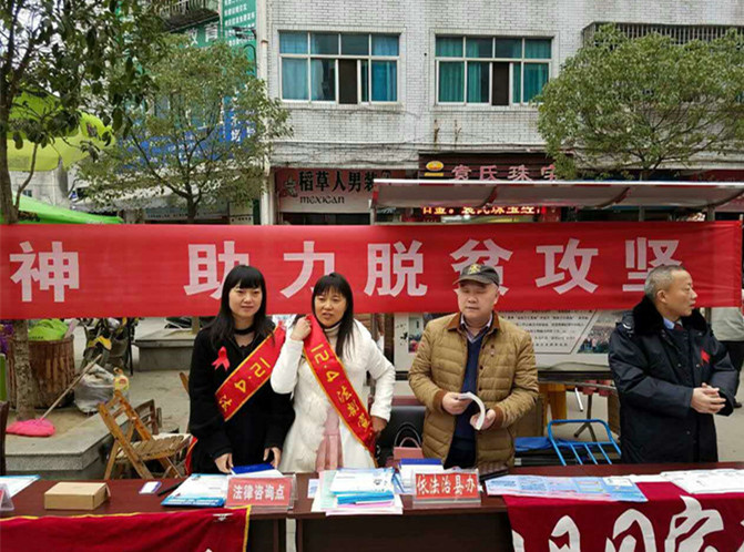 2017年12月4日,四川剑州律师事务所在剑阁县下寺镇沙溪坝步行街展“12▪4”宪法日普法宣传。
