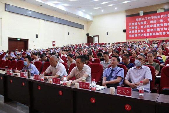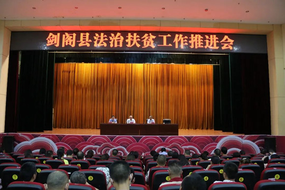 2020年6月4日,中共剑阁县委、县政府在影视文化中心召开法治扶贫工作推进会,对今年以来法治扶贫工作开展情况作通报,对下步工作作安排部署。会议由县委常委、政法委书记杨明学主持。县政府、县司法局、县法院、县检察院负责人,各乡镇、县级各部门负责人,各律师事务所律师、法律服务所基层法律服务工作者及相关工作人员参加了会议。