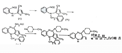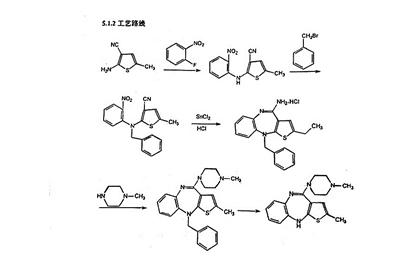 国家药监局2010年9月8日颁发给华生公司的《药品补充申请批件》所附《奥氮平药品补充申请注册资料》中,5.1“原料药生产工艺的研究资料及文献资料”之5.1.2“工艺路线”中绘制的反应路线如下: