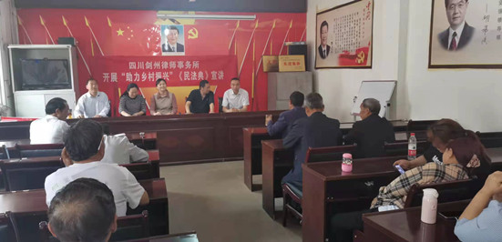 为进一步贯彻乡村振兴战略的实施,深入落实新发展阶段优先发展农业农村、全面推进乡村振兴的总体部署,进一步加强落实《民法典》宣传普及,引导农村居民尊法守法用法,提高农村居民的法律意识,2021年5月7日上午9时许,四川剑州律师事务所王柏松律师、孙俊玲律师、陈霞律师在剑阁县龙源镇梨垭村开展“助力乡村振兴”《民法典》宣讲活动。