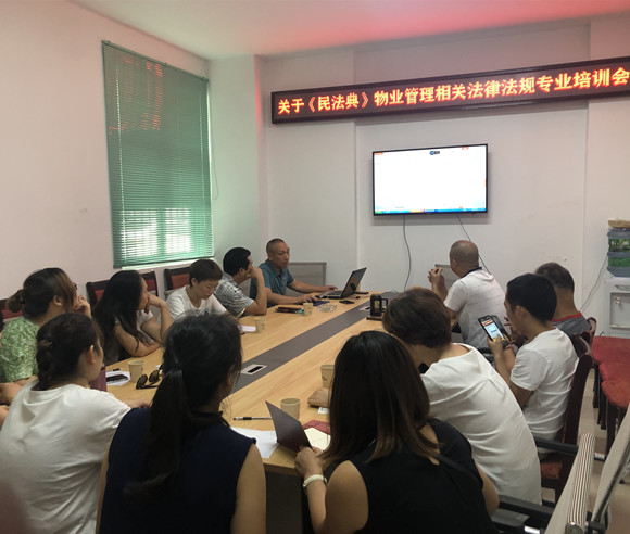 张玉律师讲授了《中华人民共和国民法典》、《中华人民共和国劳动法》、《中华人民共和国劳动合同法》、《物业管理条例》等有关物业管理法律法规,重点围绕当前物业管理的热点、重点问题进行了讲解,并针对企业在对外经营管理、职工权益、企业债权债务处理等方面提出了防范风险的建议,对涉法问题提出了解决的法律途径和方法。
