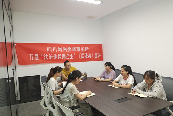 为了贯彻落实“八五”普法,深入开展民营企业法治体检工作,提高民营企业依法经营能力,2021年7月28日,剑州律师事务所魏椿林律师在四川永昊建设工程有限公司开展“法治体检”进企业活动,公司负责人及生产经营部门人员参加了活动。