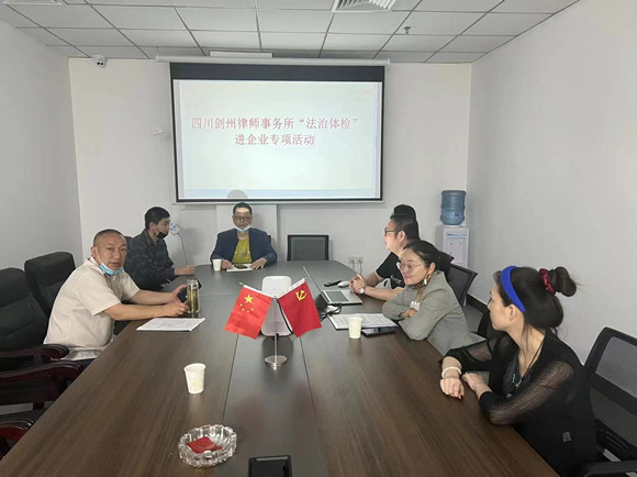 为贯彻落实省市县营商环境决策部署,进一步发挥法律服务在优化营商环境中的保障作用,提升企业依法经营的能力,促进企业健康发展,2022年5月18日,四川剑州律师事务所魏椿林律师、张玉律师、邓姝琳律师在四川富蜀建设工程有限公司开展“法治体检”进企业专项活动,公司负责人及相关部门管理人员参加了活动。