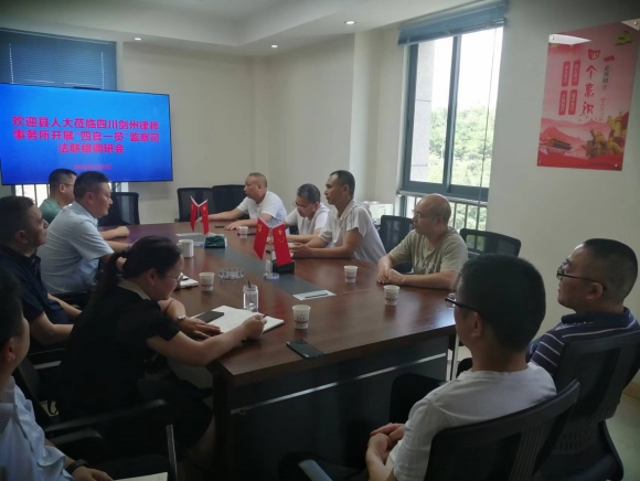 2023年7月5日,县人大监察司法委调研组到四川剑州律师事务所开展“四官一员”监察司法联络调研座谈会。