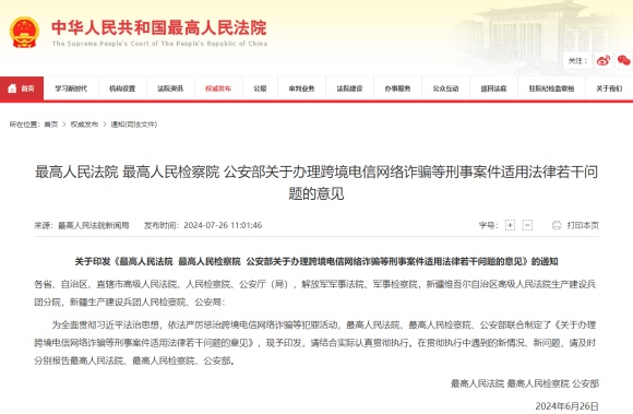 关于印发《最高人民法院最高人民检察院公安部关于办理跨境电信网络诈骗等刑事案件适用法律若干问题的意见》的通知